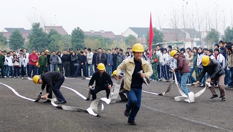 为了配合“平安校园主题月”的开展,11月30日下午,我校在市消防特勤中队的指导下,举办了首届逃生与灭火演习运动会,近千名师生参加了活动。校领导杨柳、丁根林和消防特勤中队马俊队长以及各相关处室的负责人也到场为运动员加油。