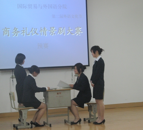 为了丰富校园文化,展示分院学子特有的商务素质风采,突出专业特色,以更好的姿态迎接我校30周年校庆和文明单位创建,国际贸易与外国语分院首届大学生商务礼仪文化大赛于4月8日晚如期拉开帷幕。