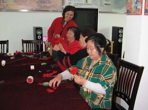 近日,为了帮助下岗失业妇女顺利实现再就业,服务地方办大学邀请学校绢花社的专业老师,利用社区再就业基地为社区内下岗失业妇女进行制作手工绢花技能培训。