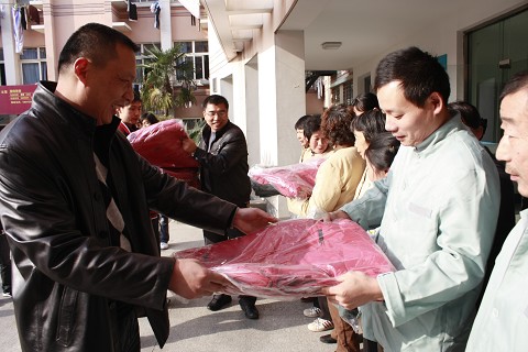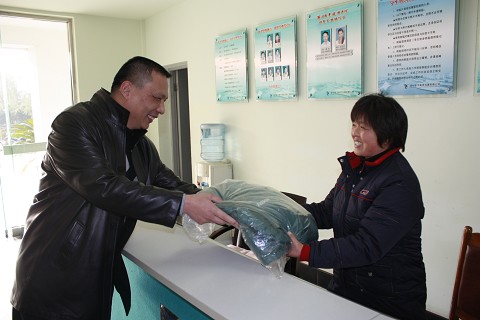 “非常感谢你们一直以来的关心和帮助,我们一定会把学生社区搞的更漂亮。”公寓保洁员程牛珍激动地握着领导的手说道。12月3日下午,学生社区党总支副书记、新宇教育发展有限公司副总经理刘青春、公寓中心主任高志强一行来到学生公寓走访慰问公寓保洁员,为他们送去了羽绒衣。