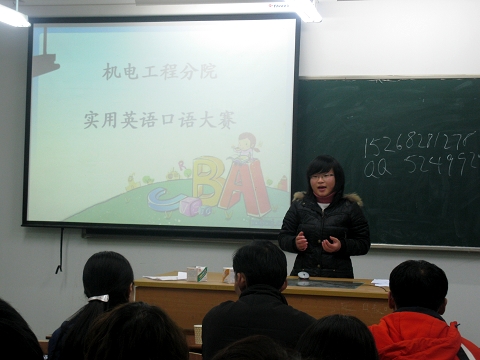 为提高分院学生口语表达能力,锻炼学生自信心。 12月3日晚,机电工程分院在10202教室举办“实用英语口语大赛”。夏章洪,曲宪明,梅明玉,徐娟,曹亮等教师担任此次比赛的评委。