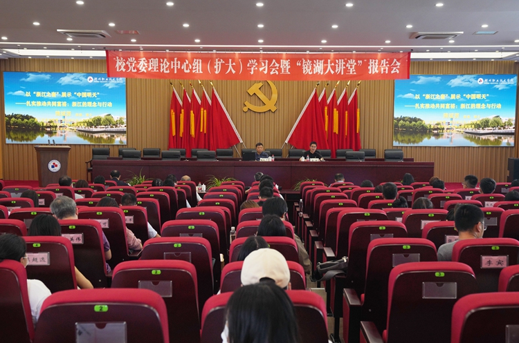 6月17日下午,校党委理论学习中心组(扩大)学习会暨“镜湖大讲堂”报告会举行。浙江省政协常委、浙江省社会主义学院原巡视员隗斌贤教授应邀来校作了题为《以“浙江之窗”展示“中国明天”——扎实推动共同富裕:浙江的理念与行动》的专题辅导报告。校党政班子成员、各二级党总支(直属支部)书记、党群部门负责人、各全日制二级学院副书记、马克思主义学院教师、辅导员代表、旅游与公共管理学院师生代表参加了报告会。校党委委员、宣传部部长金祥主持报告会。