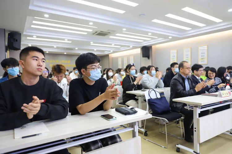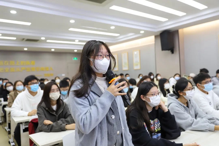 在交流环节,学弟学妹们踊跃发言、积极提问,把自己对未来方向和生涯规划等方面的困惑提出,校友们则结合自身的就业创业经历,一一为学弟学妹们做了解答,给了建议。现场气氛热烈,掌声不断。