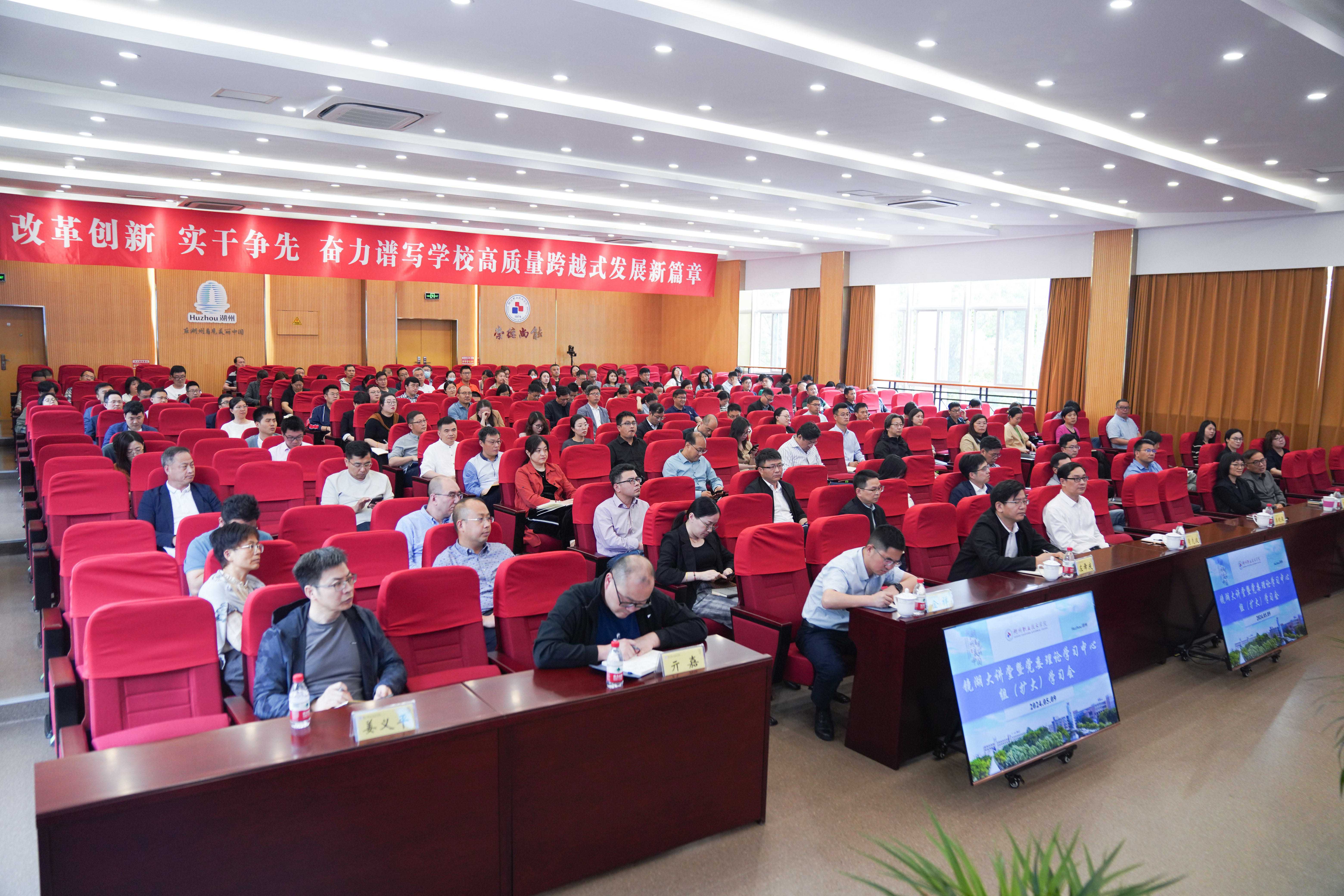 5月9日下午,学校召开镜湖大讲堂暨党委理论学习中心组(扩大)学习会。北京师范大学教育学部教授、博士生导师,北京师范大学中国乡村教育研究中心主任,教育部高等教育教学评估中心专家李兴洲应邀来校作了题为《新质生产力与高职院校专业建设和人才培养》的专题讲座。校党政班子成员、全体中层干部、教研室主任、专业带头人、党支部书记、重点实验室负责人、博士创新站负责人、校内研究所负责人等共计180余人参加本次学习。校党委副书记李晓俊主持学习会。