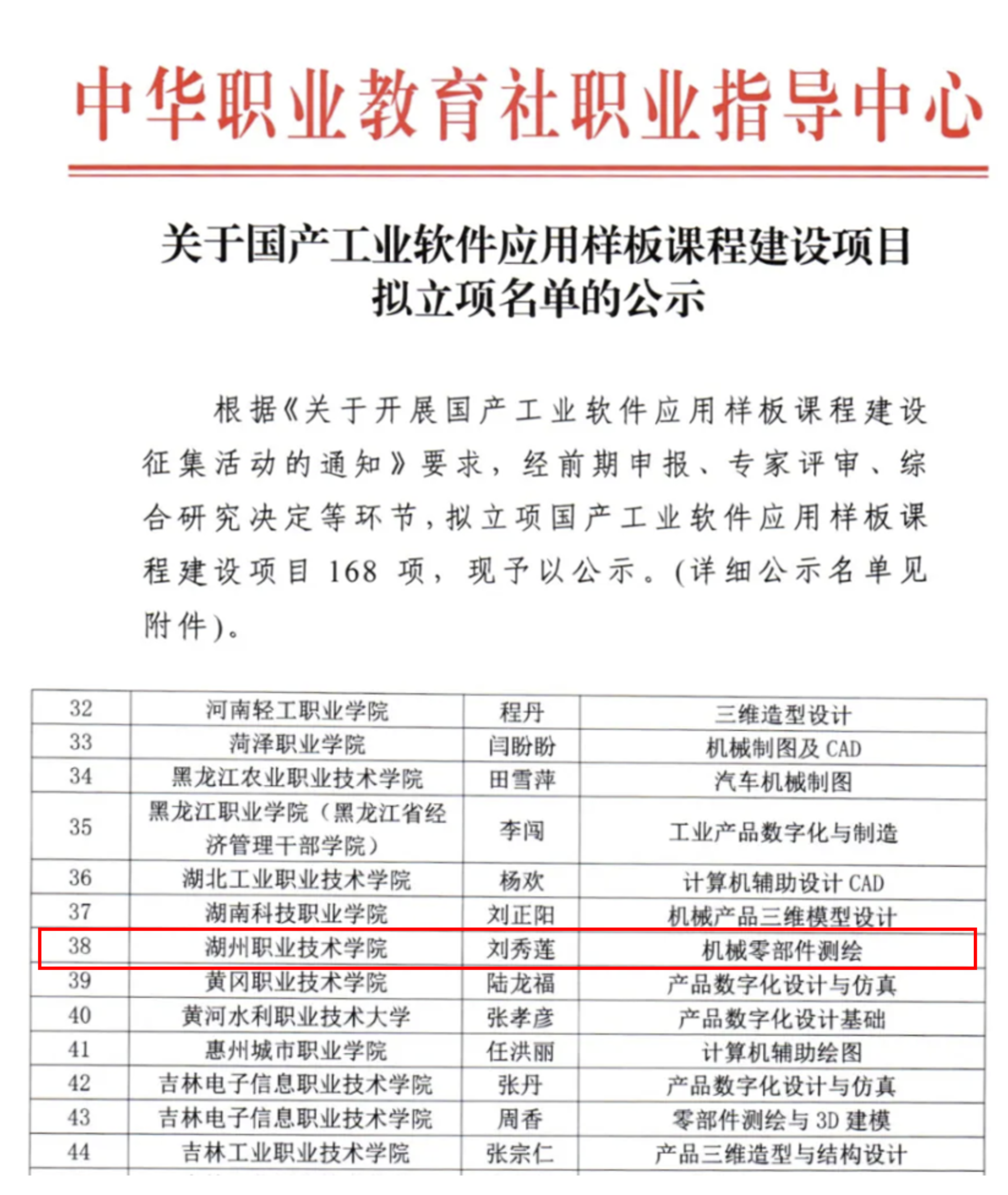 10月15日,中华职业教育社发布《关于国产工业软件应用样板课程建设项目拟立项名单的公示》,我校智能制造与电梯学院《机械零部件测绘》课程经严格评审,从全国申报项目中脱颖而出,成功入选2025年国产工业软件应用样板课程建设项目名单。