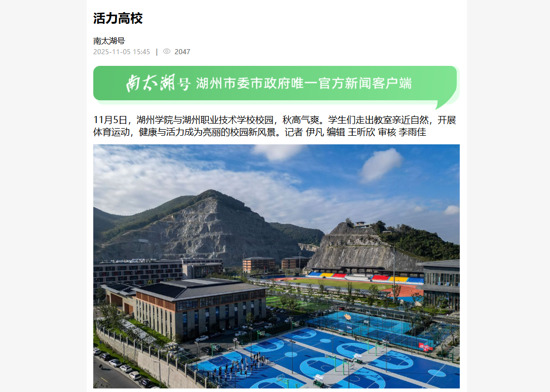 2025年11月5日《南太湖号 》对学校亮丽的校园风景进行相关报道。