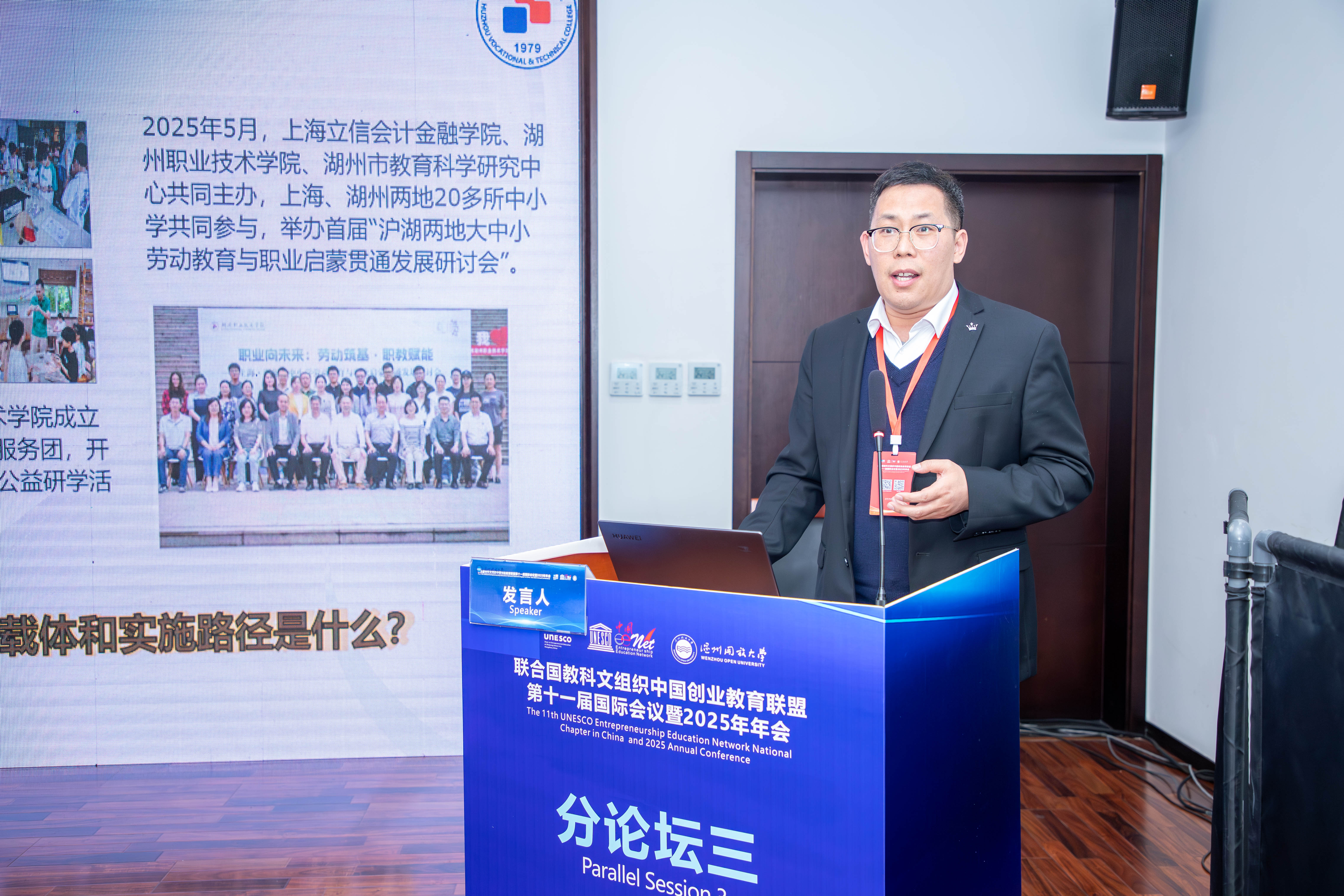 2025年11月15日至16日,联合国教科文组织中国创业教育联盟第十一届国际会议暨2025年年会在温州开放大学举办。本届会议主题为“变革与创新:面向未来的创业教育”。来自6个国家的近260名专家学者、教育工作者及行业代表等共同探讨未来创业教育的发展路径。创业学院、社会发展与公共教育学院王伟博士、副教授受邀参会并在分论坛上做主题报告。